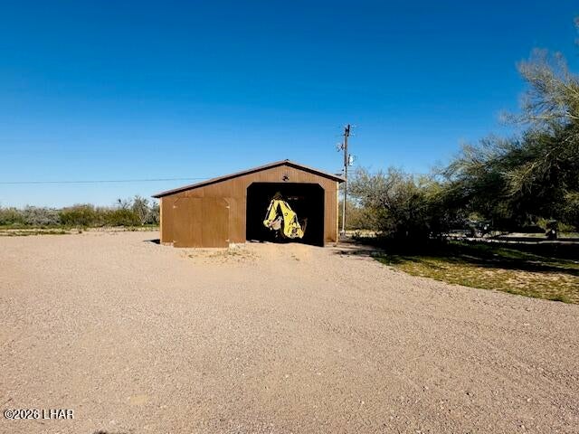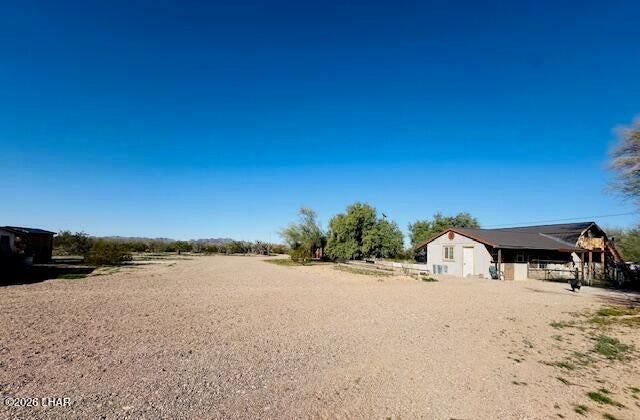 Located in a secluded area is this cozy cabin style home. 1 bedroom 1 bath with all new appliances, kitchen cabinets, mini splits, wood trim, double pane windows, tile floors and window coverings. Sits on 20 acres that backs up to the Bouse Wash. 26×22 detached garage and covered parking. If you want wide open space and some peace and quiet this place is for you.