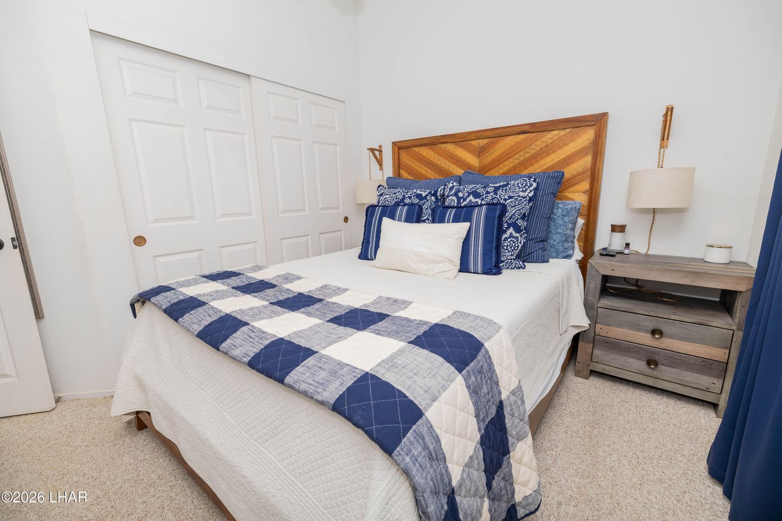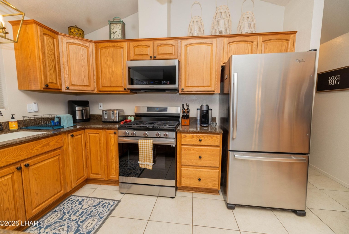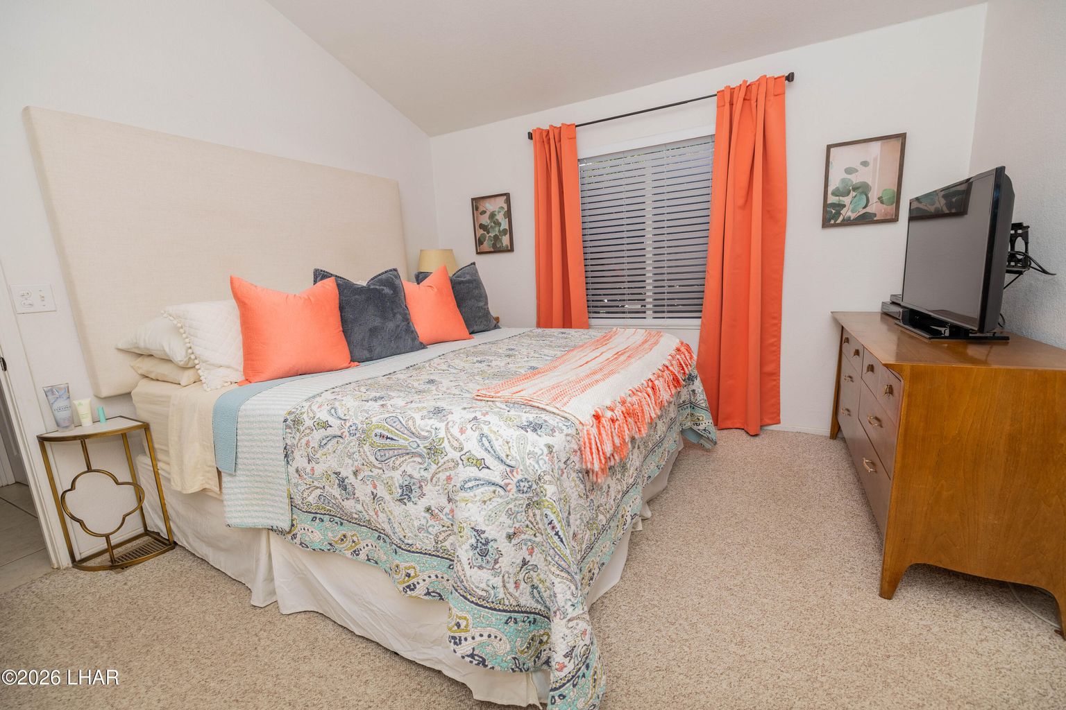 On leased land. No HOA fees. Enjoy your days and nights from the patio of this beautifully maintained and furnished home, offering vaulted ceilings with ceiling fans in each room, indoor laundry area with newer appliances, and a well-appointed kitchen offering plenty of storage, a gas range/oven and a built-in beverage bar/pantry. The large, detached garage has room for the water/desert toys and the toolboxes. The community has a shared dock and green areas and is located close to launch ramps for the Colorado River and Lake Havasu. Start enjoying the ”River Life” without paying a fortune!