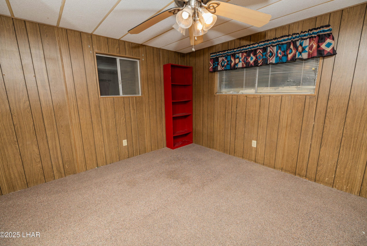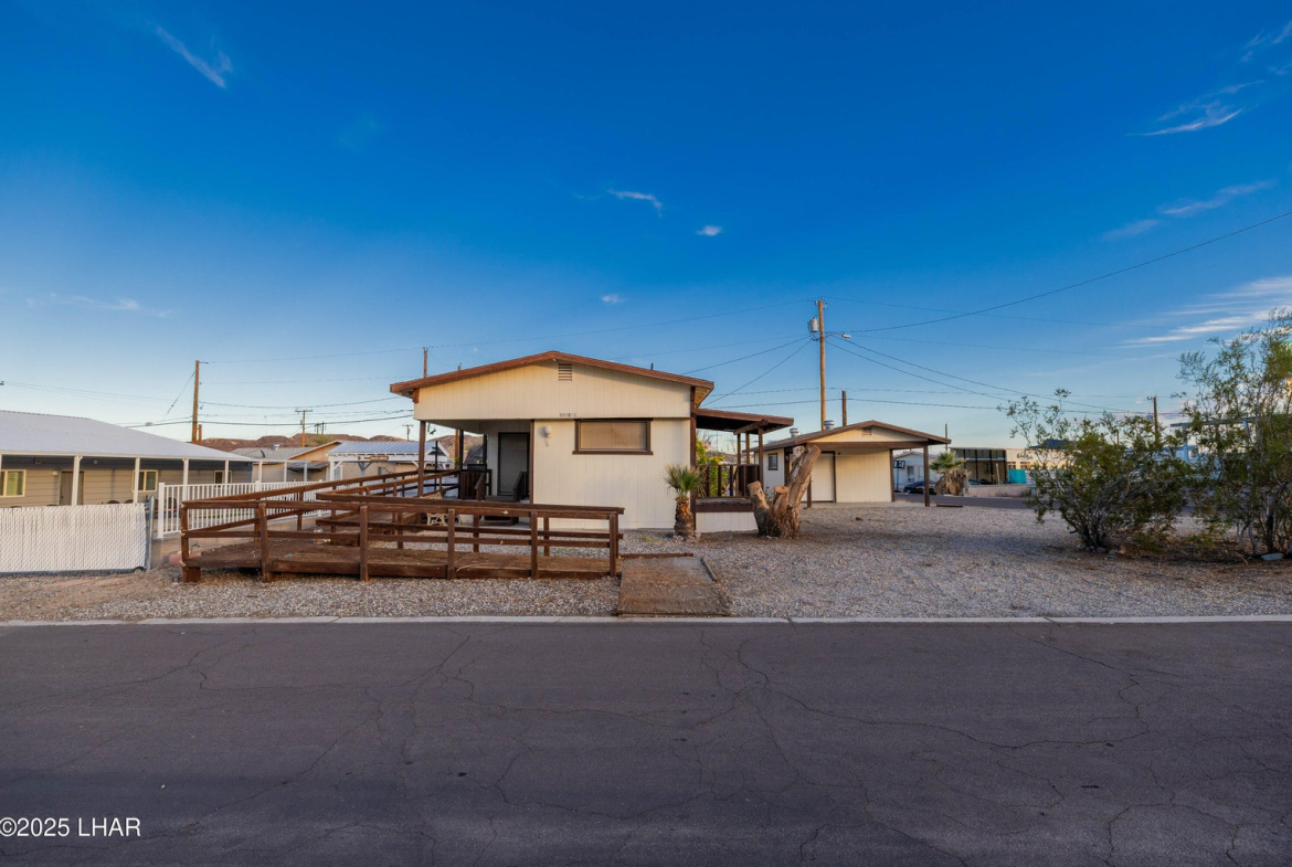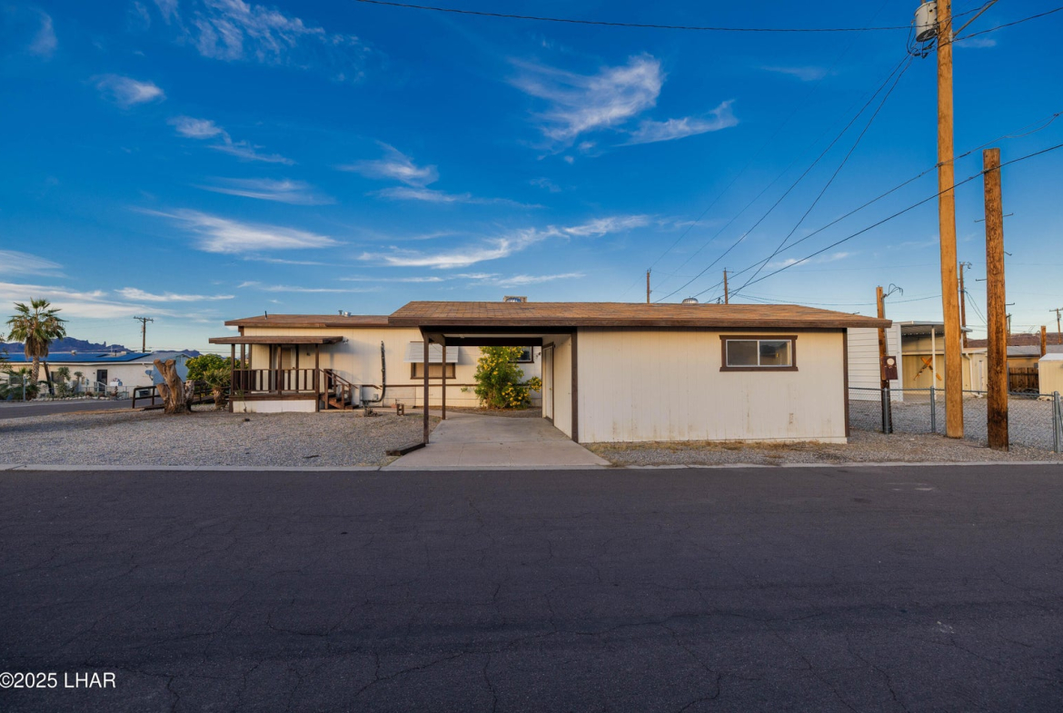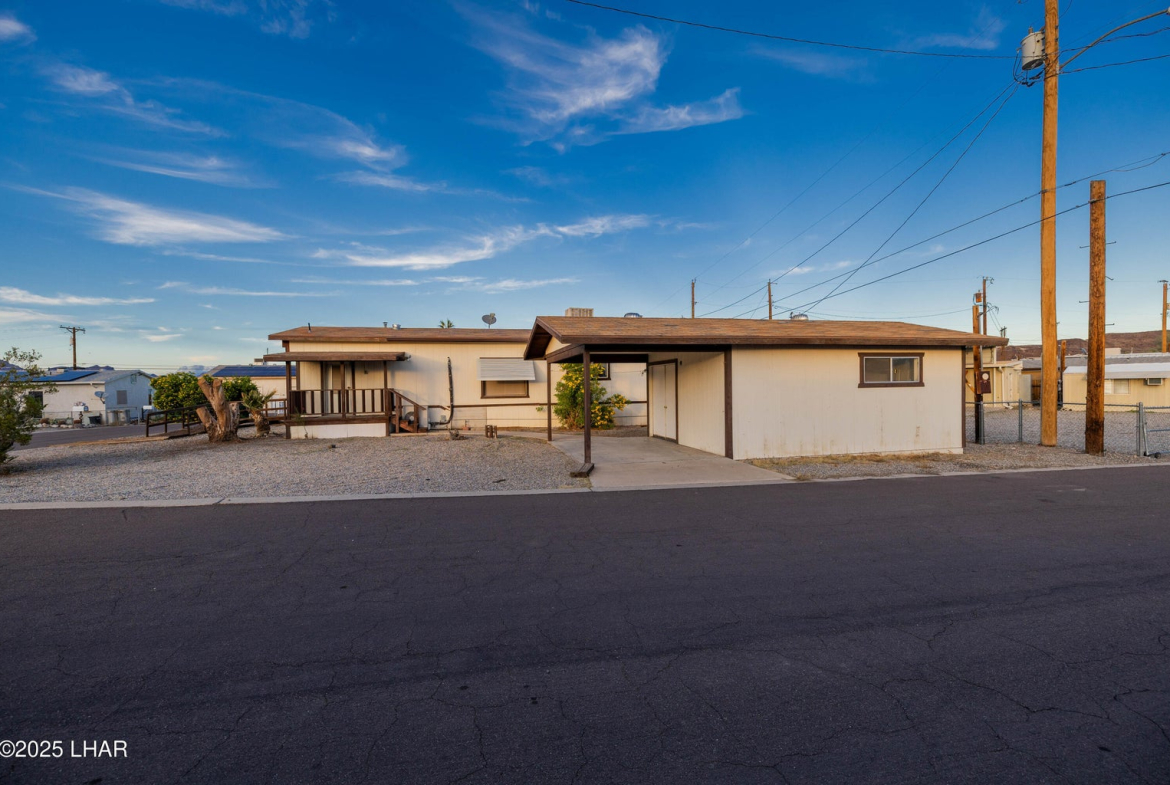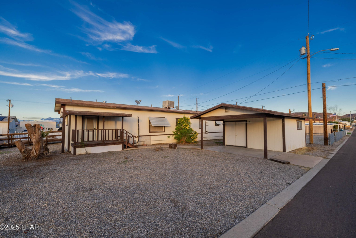 On two Lots with plenty of room for RVs, boats, and guest parking, this property is a great starter home, investment rental, or tear-down opportunity to build your dream toy barn. The existing home features two bedrooms and one bathroom, plus an add-on area already equipped with a window, door and closets, making it easy to convert into a third bedroom. A spacious laundry/utility room provides additional storage and flexibility. Outside you’ll find a large storage building that could be transformed into a guest quarters, workshop, or mancave. With a little imagination, the possibilities are endless. Located close to the river and desert, you’ll enjoy year-round outdoor activities. Best of all, there’s no HOA, and the property is situated on deeded land. Call Today!