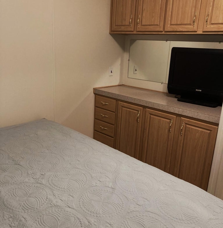 The monthly lease includes water, trash and sewer and there is a community washer, dryer and ice maker for home owner use.