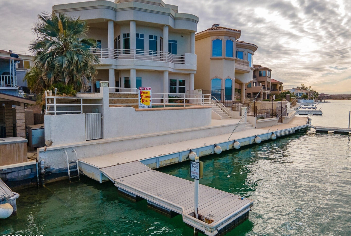 Here it is! The Parker Strip Riverfront Home you have been waiting for! Located in the desirable gated community of Miraleste Shores! This community have a beautiful pool, manicured lawn area, docks and a launch ramp! Come down and see this beautiful home with its own private dock PLUS Your Own Private pool and spa! This home features two master suites, a huge game room and a wrap around patio with unobstructed Riverfront views that will keep you coming back time and time again. Call and book your private viewing today!