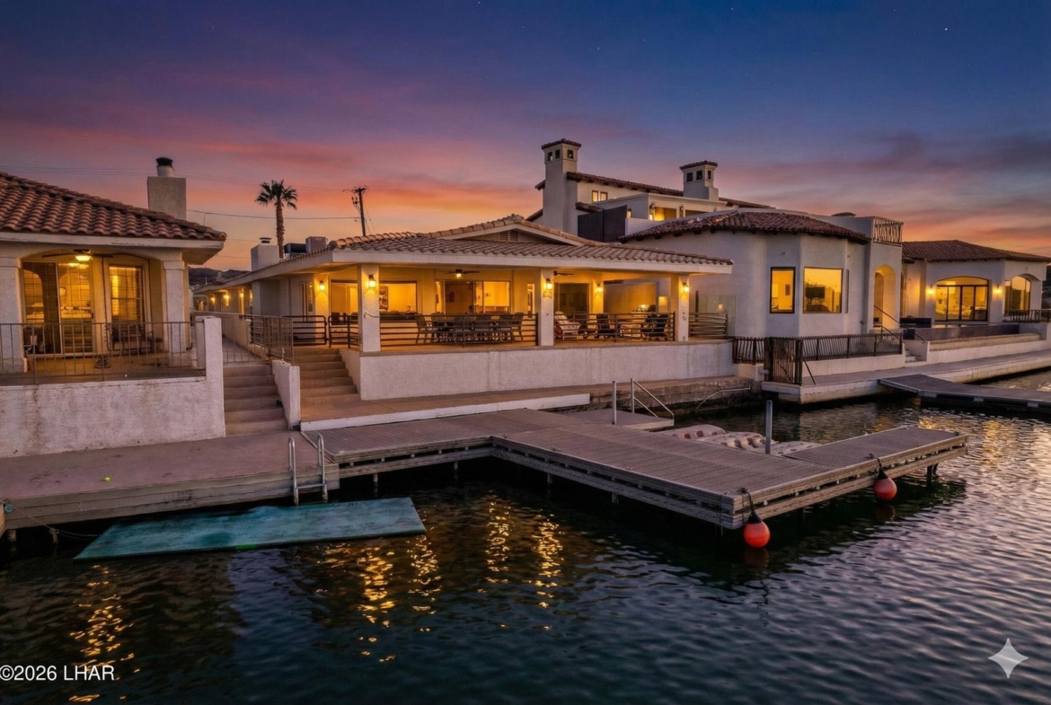 PARKER STRIP – MOOVALYA KEYS RIVERFRONT!! Beautiful 4 Bedroom 3 1/2 Bath Home. Cozy Living Space where all Windows Face the Water! Spacious great room for all your River Family Gatherings. HUGE Riverfront patio, upper and lower decks, and a Large brand new Private Dock for your boat and waverunners! Boat Deep Garage! Enjoy the Arizona Sunsets on your Riverfront Patio! CALL TODAY TO SEE!! You will not want to leave!