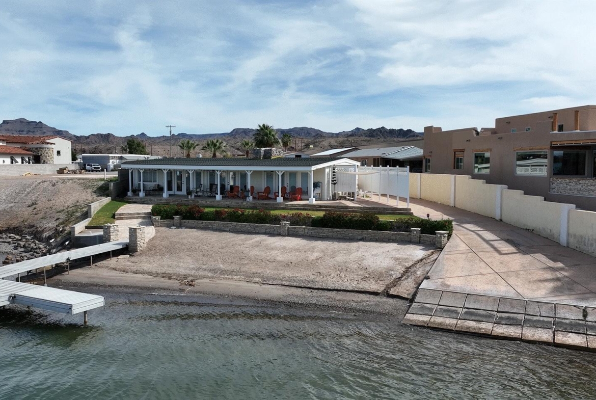 Rare ”Unicorn” Riverfront Property on the Parker Strip. Experience the impossible – 100 feet of Private River frontage on the Colorado River PLUS over 1.5 acres of land. Properties like this do not exist anymore. Private sandy beach, dock & launch ramp.