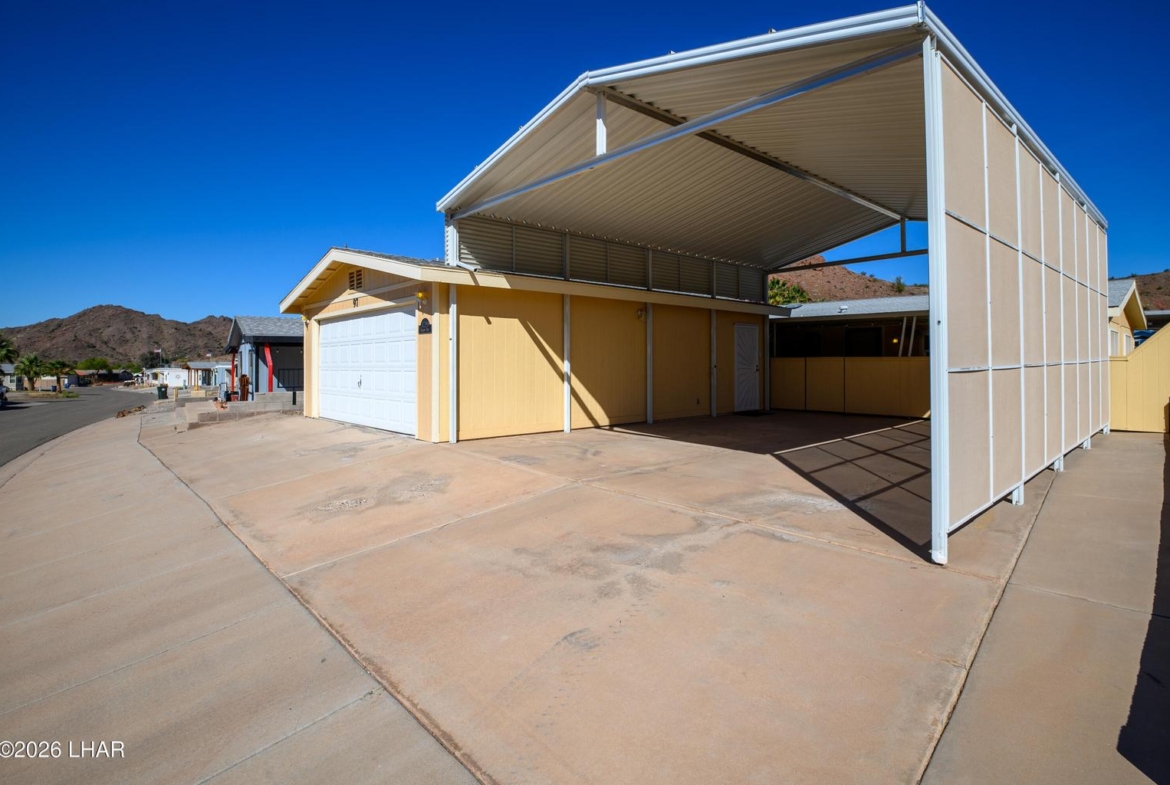 A perfect river home with an open floor plan, private patio area with an outside shower, 30 foot deep garage and an RV carport.