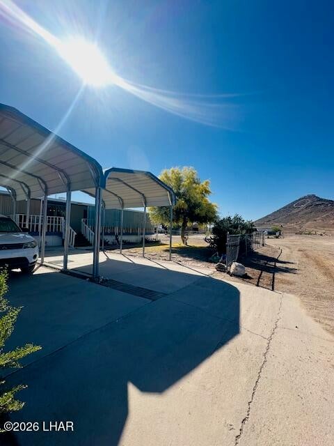 Super clean double wide home in quiet area of Q Mountain estates. This roomy home has lovely desert landscaping, awesome mountain views, covered front porch, plenty of covered side parking and 1 RV hookup, carpet and laminate throughout, central cooling and heating, spacious kitchen and dining area, split bedrooms. Come see this well cared for home that sits right under the Q mountain.