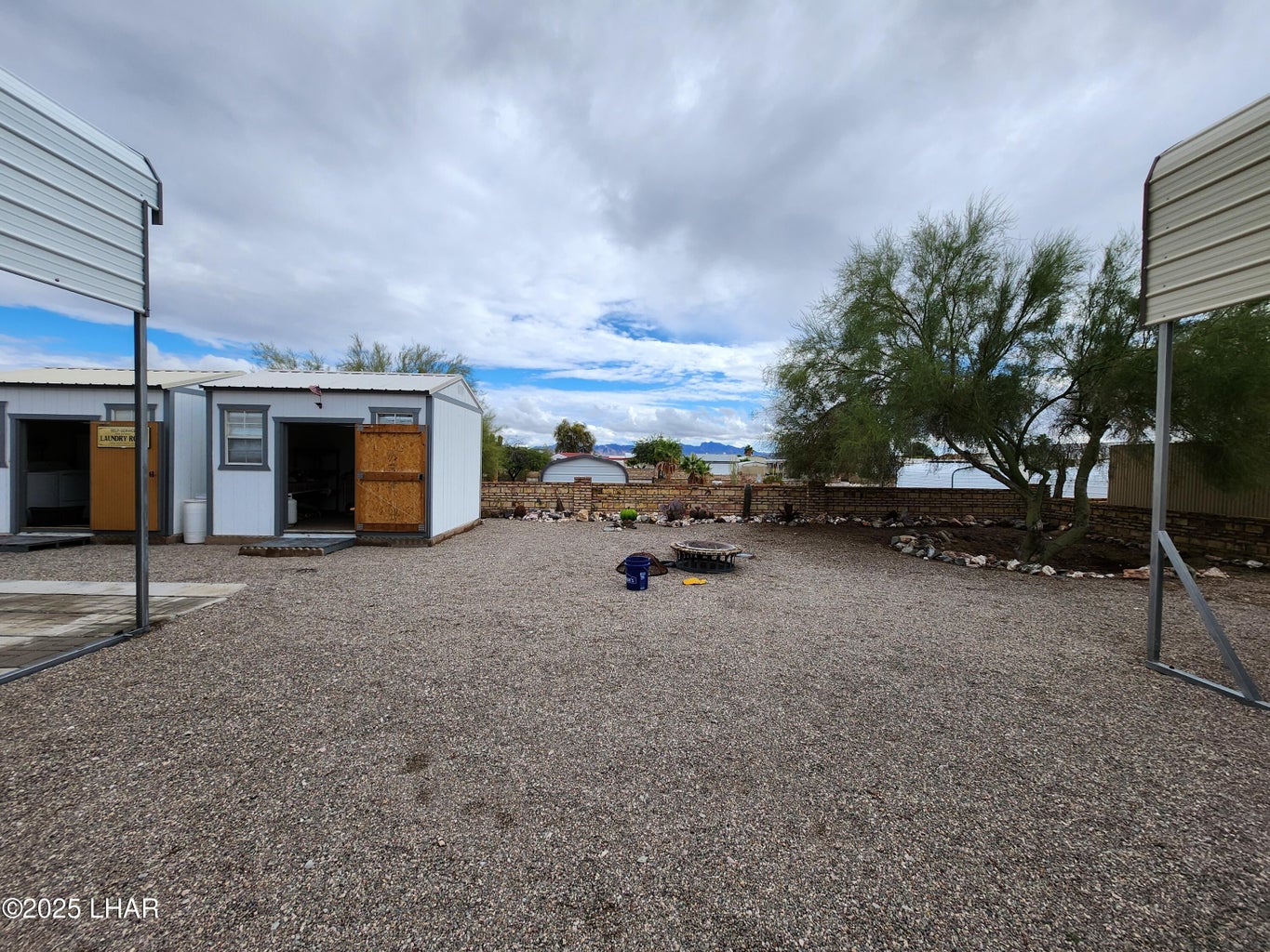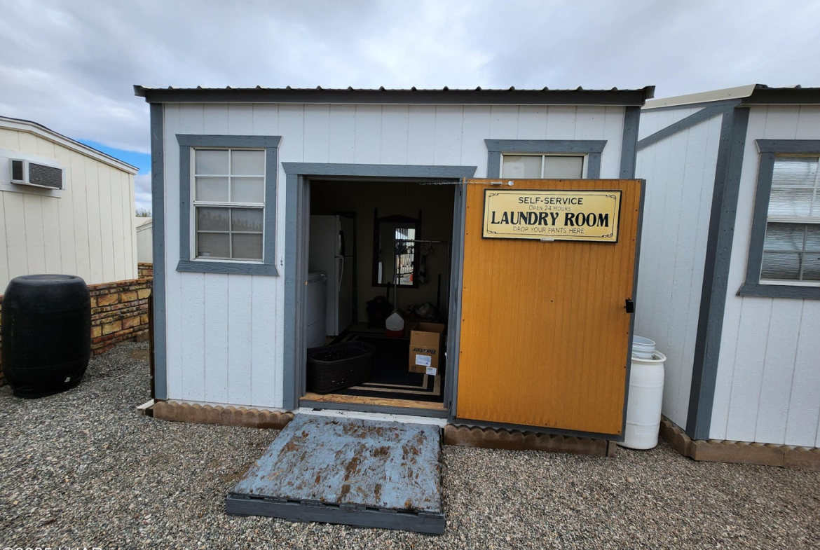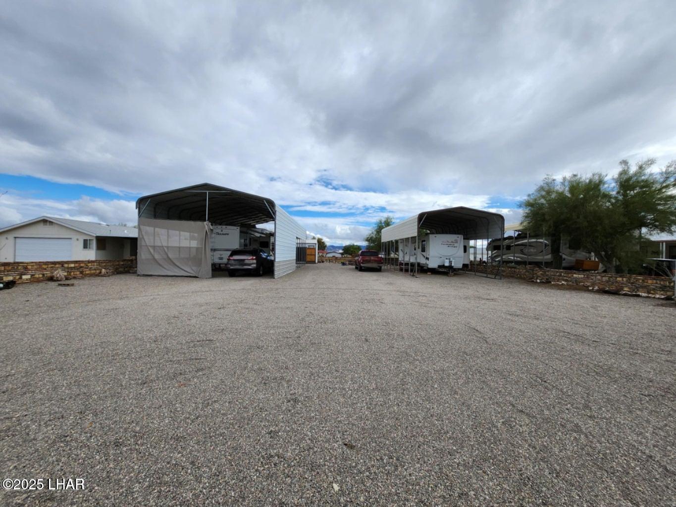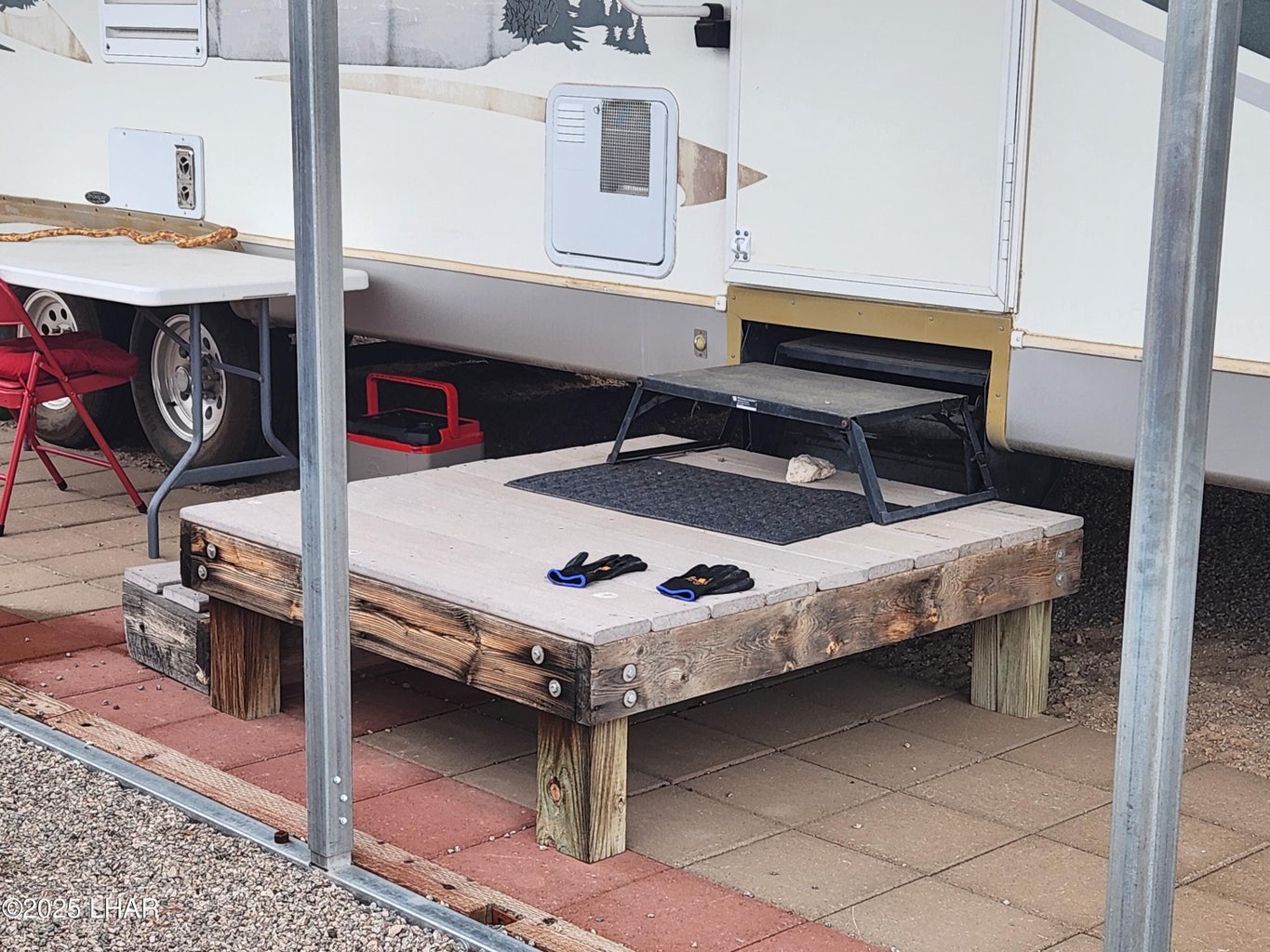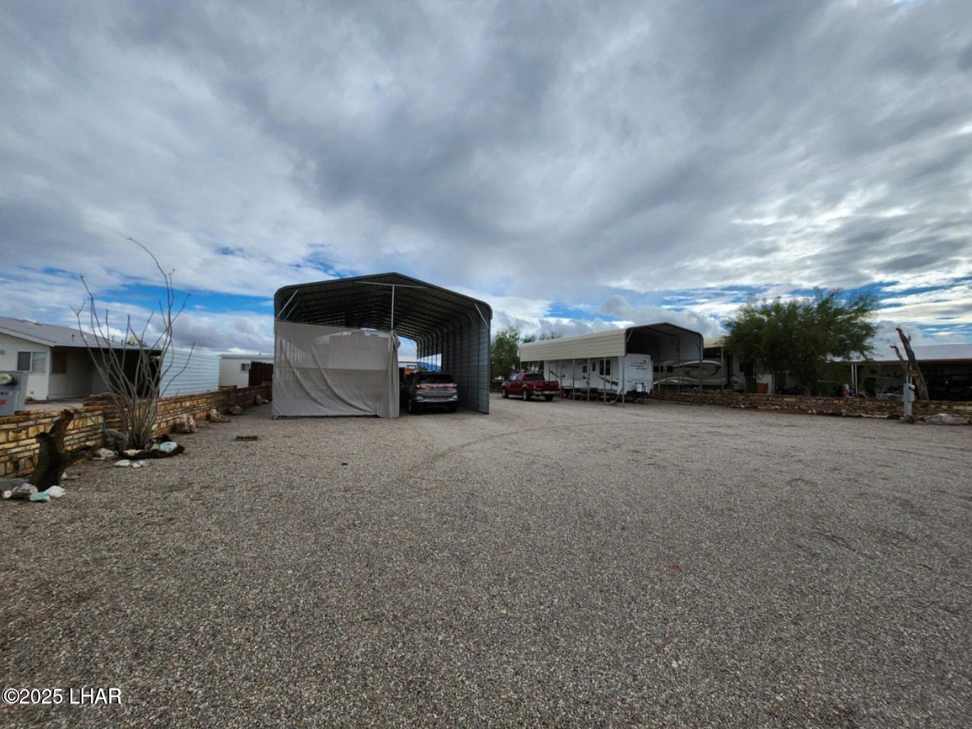 RV lot in Rainbow Acres with 2-50 amp full hookups, 40′ X 18′ RV cover and 51′ X 24′ RV cover, 2 sheds. 1 shed has laundry hookups and fridge and the appliances are included. The other shed has been used as the group dining area and also makes for good storage. No front wall or gates for ease of maneuverability for your rigs. Mature Palo Verde tree for shade. Both the 5th wheel and the trailer are available outside of escrow or will be removed. This lot was loved and enjoyed for years, now it’s your turn!