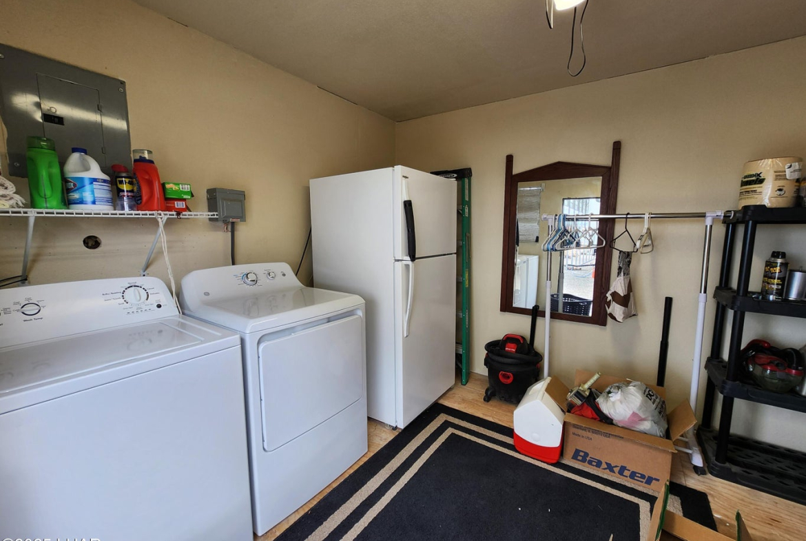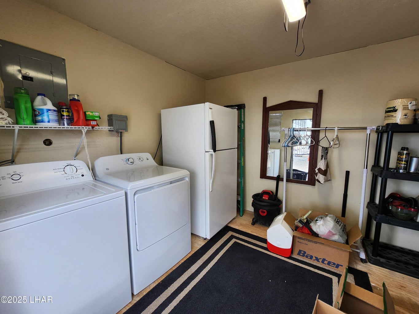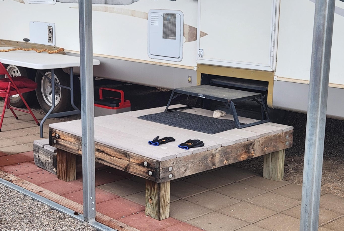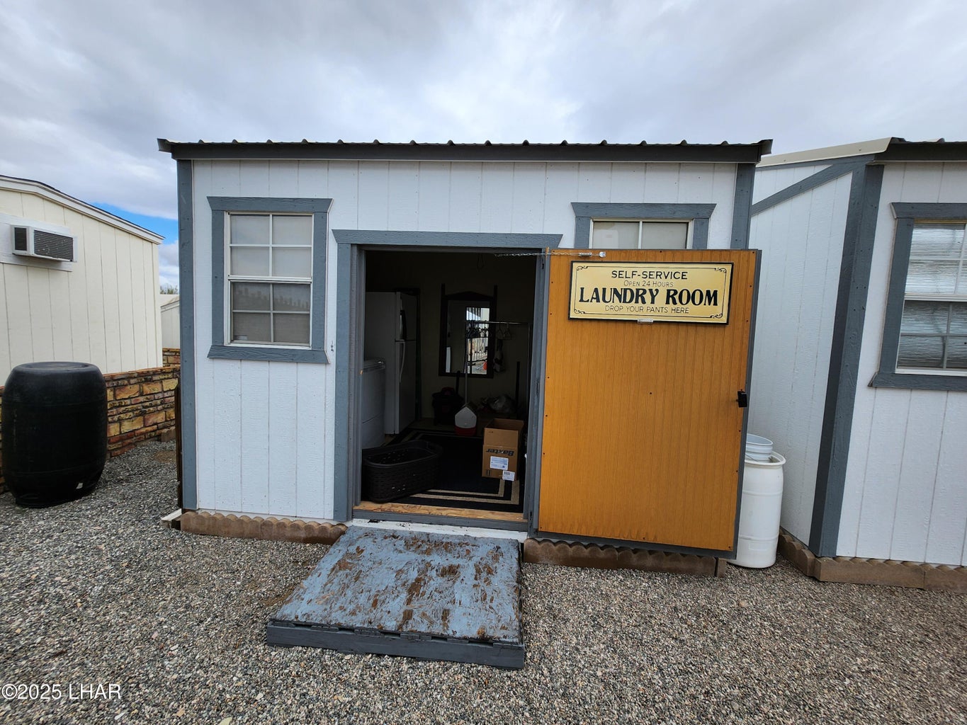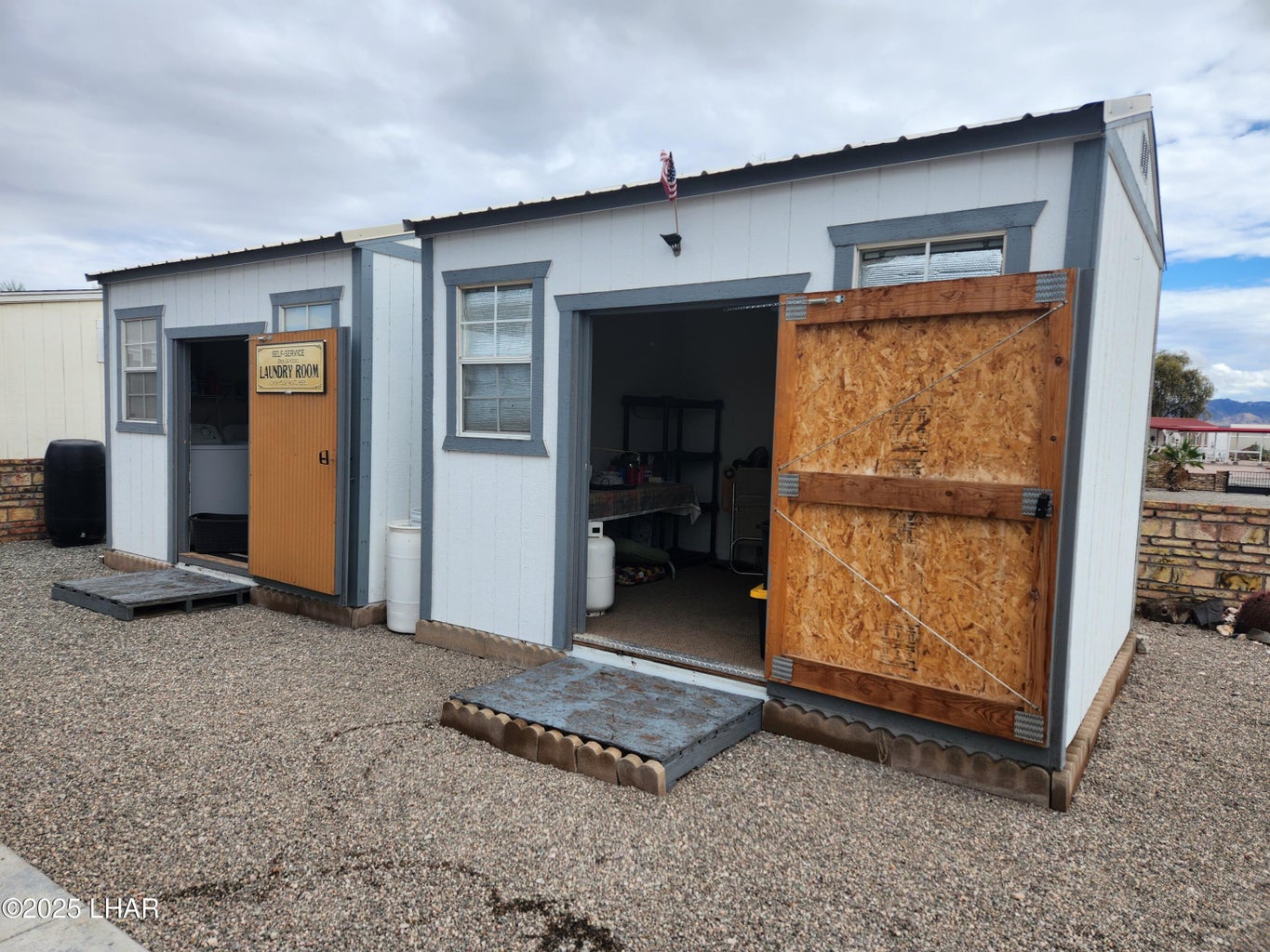 RV lot in Rainbow Acres with 2-50 amp full hookups, 40′ X 18′ RV cover and 51′ X 24′ RV cover, 2 sheds. 1 shed has laundry hookups and fridge and the appliances are included. The other shed has been used as the group dining area and also makes for good storage. No front wall or gates for ease of maneuverability for your rigs. Mature Palo Verde tree for shade. Both the 5th wheel and the trailer are available outside of escrow or will be removed. This lot was loved and enjoyed for years, now it’s your turn!