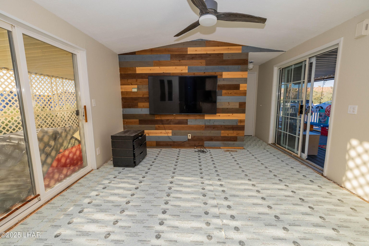 Two bedroom-two bath home located in a quite cul-de-sac with views of the river .This property features a fully covered carport and a spacious covered deck for enjoying the peaceful surroundings. The property features a large storage shed and an additional utility shed, offering plenty of space for all your needs. Inside, the home has fresh paint throughout and the living room and bedrooms are ready for your choice of a new carpet or an extension of the existing wood flooring! Move in ready with great potential to customize to your taste! Community amenities include a private boat launch ramp, beach area, and swimming pool. Call Today!