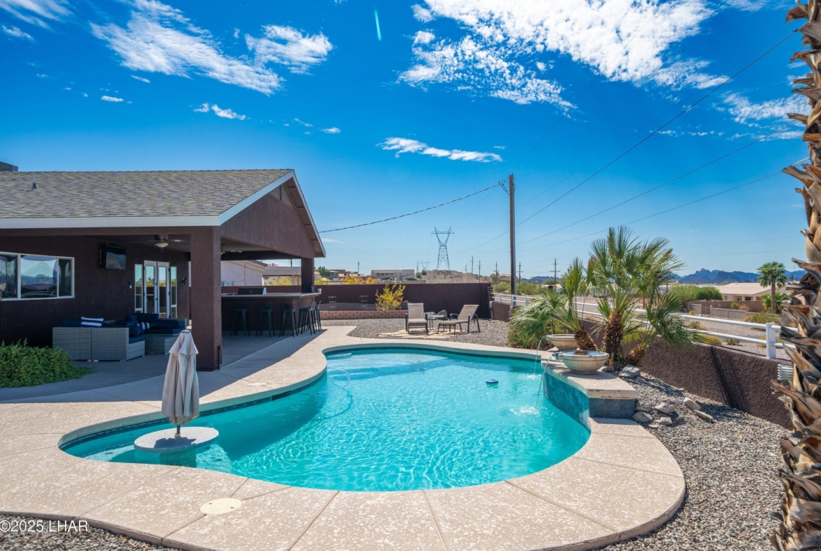 Unparalleled lake and mountain views from this well appointed pool home! Whether you’re indoors or outdoors, this property does not disappoint. Inside, the main living area flows effortlessly for entertaining. It includes such features as custom raised maple cabinetry, granite countertops, plantation shutters and gorgeous over-sized tile flooring for easy care. Outside you will find plenty of covered patio space and a built-in barbecue area/bar with seating for 6 or more. At night the pool glows with LED lighting and accent lighting throughout the yard. Loads of parking on both sides of the home and at the end of a quiet south-side street. Come see it for yourself and fall in love!