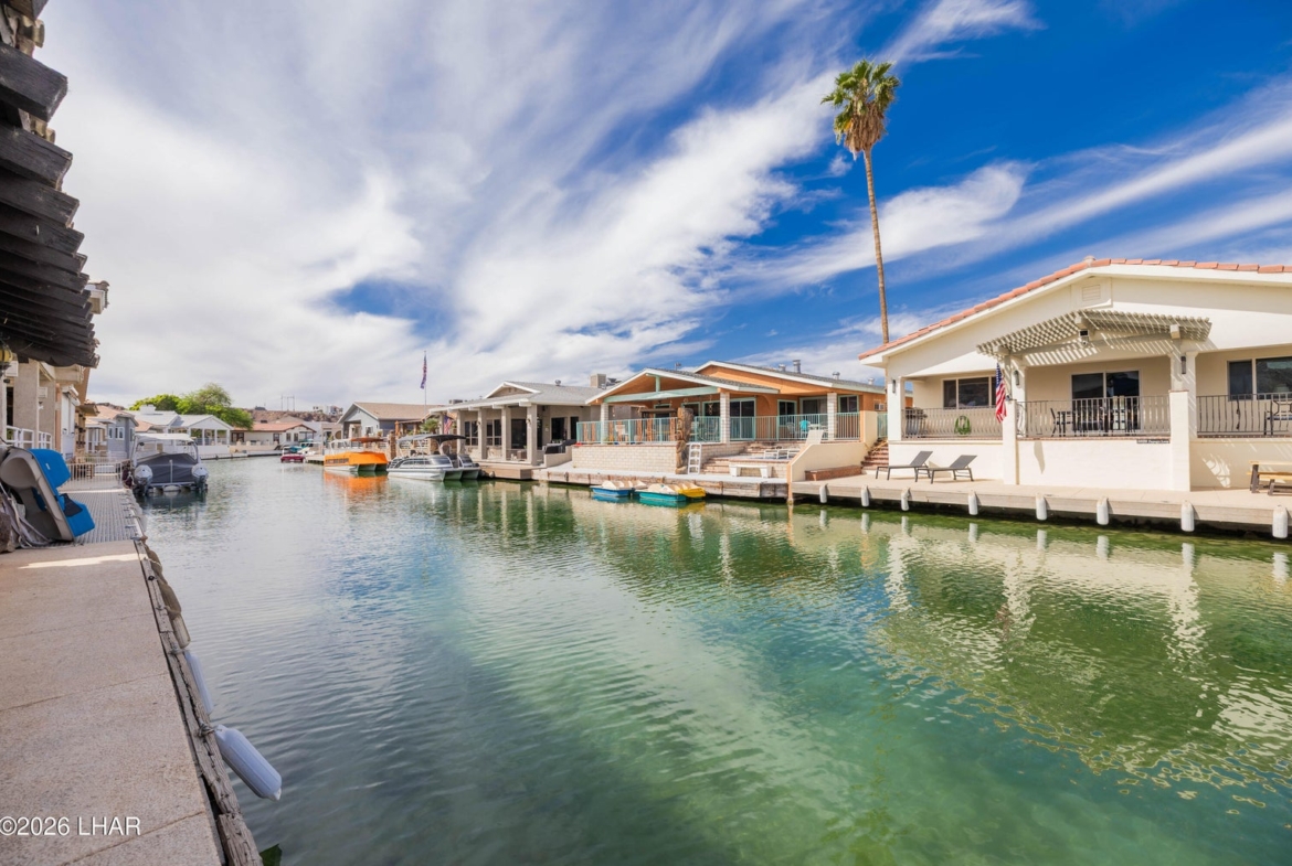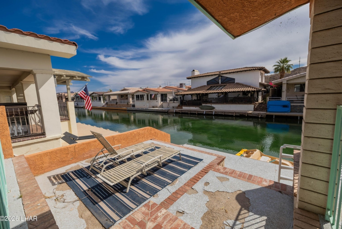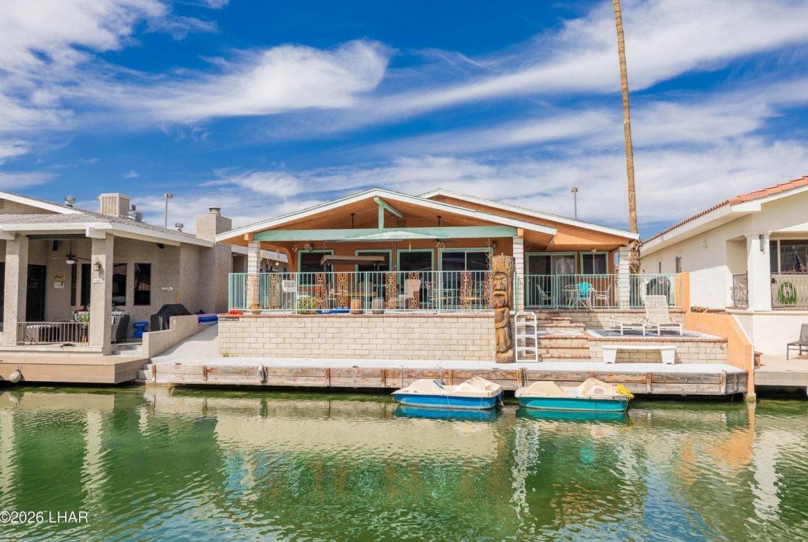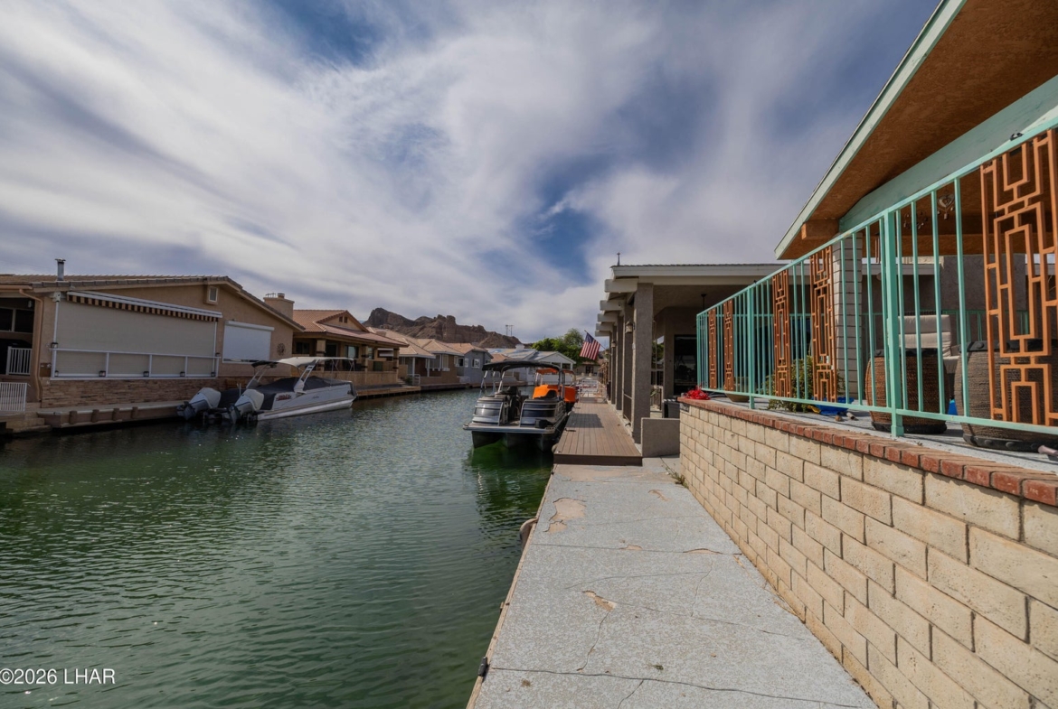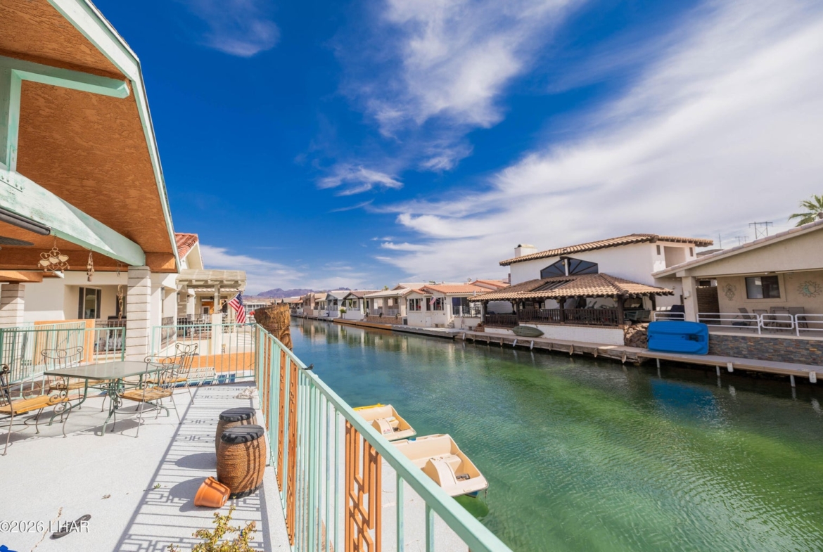 This home gets the morning sun and has a generous sized patio area with a 50 foot long dock.