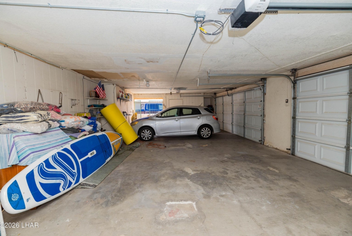 The garage has three depths, the deepest part is 29 feet x 9 1/2 feet wide, a 20 foot and an 18 foot deep sections. The total interior width of the garage is 37 feet.